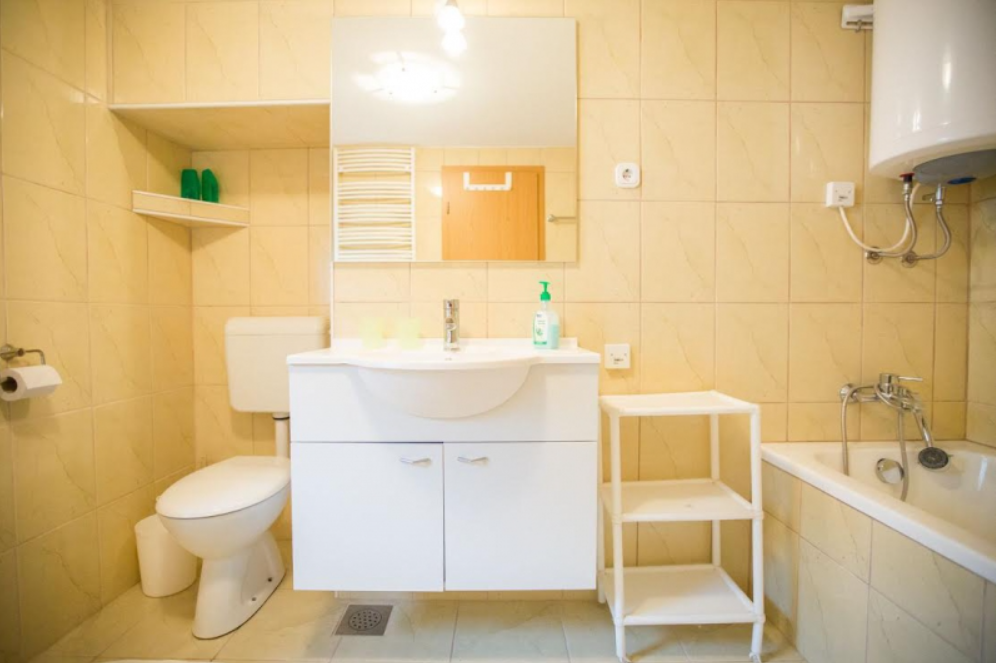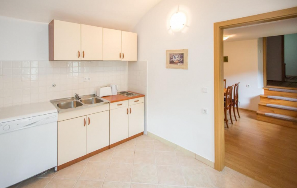 APARTMA 1 - 37 m2, dostopen po notranjem stopnišču s sprednje in zadnje strani. Vključuje majhno kuhinjo in kopalnico s prho. Lahko spi največ štiri osebe. Idealno za 4 osebe (idealno za družino z enim ali dvema otrokoma)