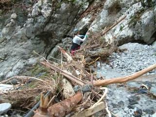 Sanacija in ozelenitev brežine z senenim nastiljem in sidranimi mrežami na Mali Mežaklji nad Jesenicami, ob cesti, ki vodi na deponijo.